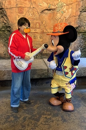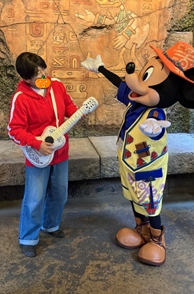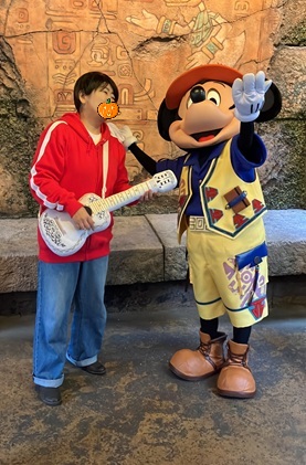 | ミゲルからミッキーへ「リメンバー・ミー」の歌をプレゼント。 ミッキーに喜んでいただけたようです☆ |