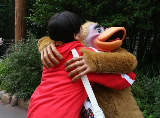 | お猿のポーズで写真を撮りました。 ハグもしてもらい楽しかったです! |