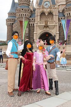 今回は主役のいない仮装だったので、お友達のAさんがラプンツェル仮装で来てくれました♪