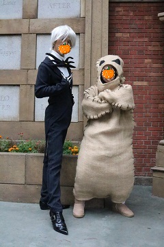 | 今回はサリー(チエホフ)の幼馴染みのえみケさんが、ウギー・ブギーで仮装参加!一緒にハロウィンを楽しみました☆ 当日は台風直撃でしたが、朝のうちに雨も上がり、昼前には晴れてきました。そしてゲストが少ない!午前中はどこも並ばずに入れました♪ |
