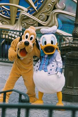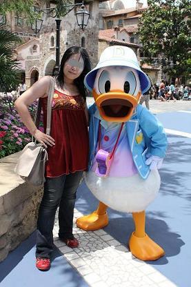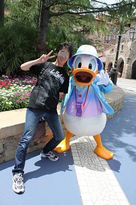 | 頭からずぶ濡れだったから「あぁ・・・」って感じのドナルド。 それでも一緒に写真を撮らせてくれました☆ 優しいドナルド。 ドナルド可愛い。 |